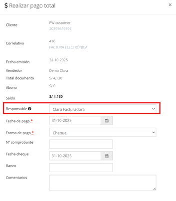 Cómo modificar el responsable de pago de un documento