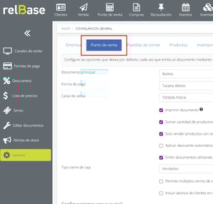 En la pantalla de configuración general, seleccionar la pestaña "Punto de Venta", en donde encontrará una lista de configuraciones relacionadas con el módulo.