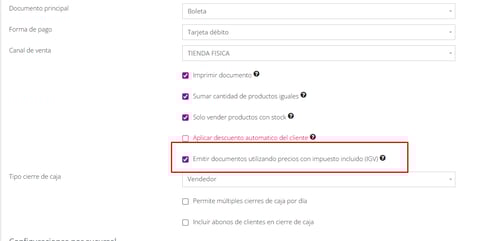 Los documentos emitidos desde el POS se calcularán con precios finales (IGV incluido).